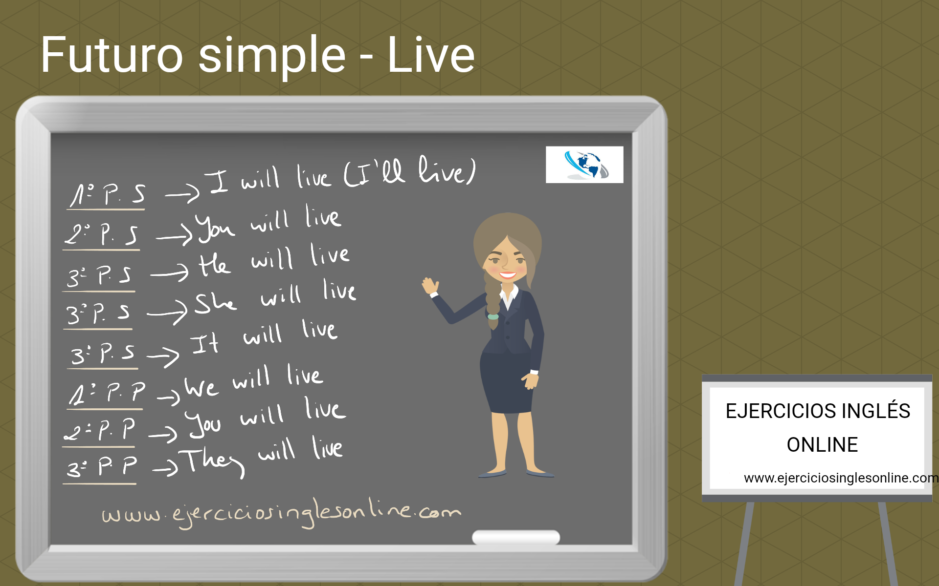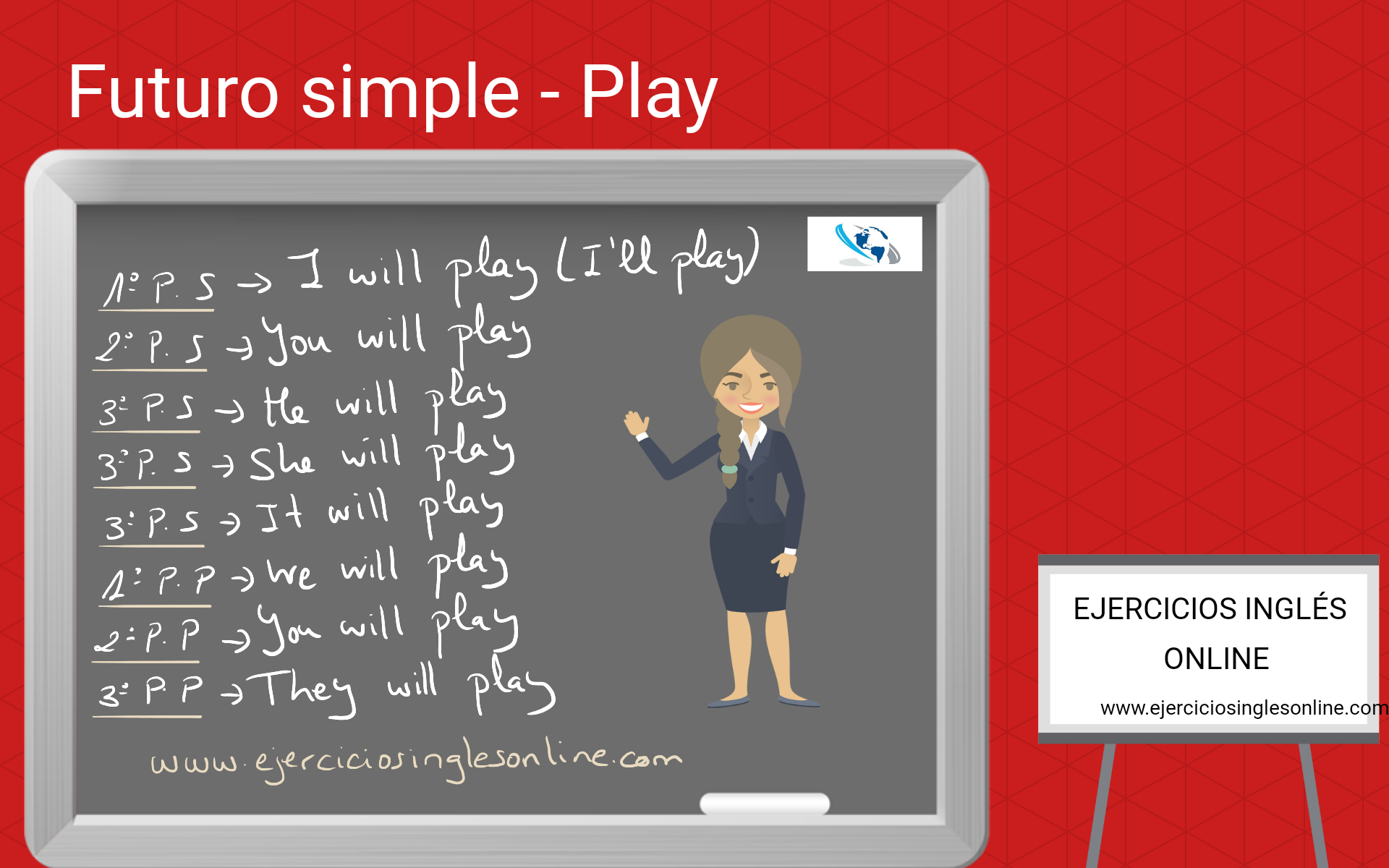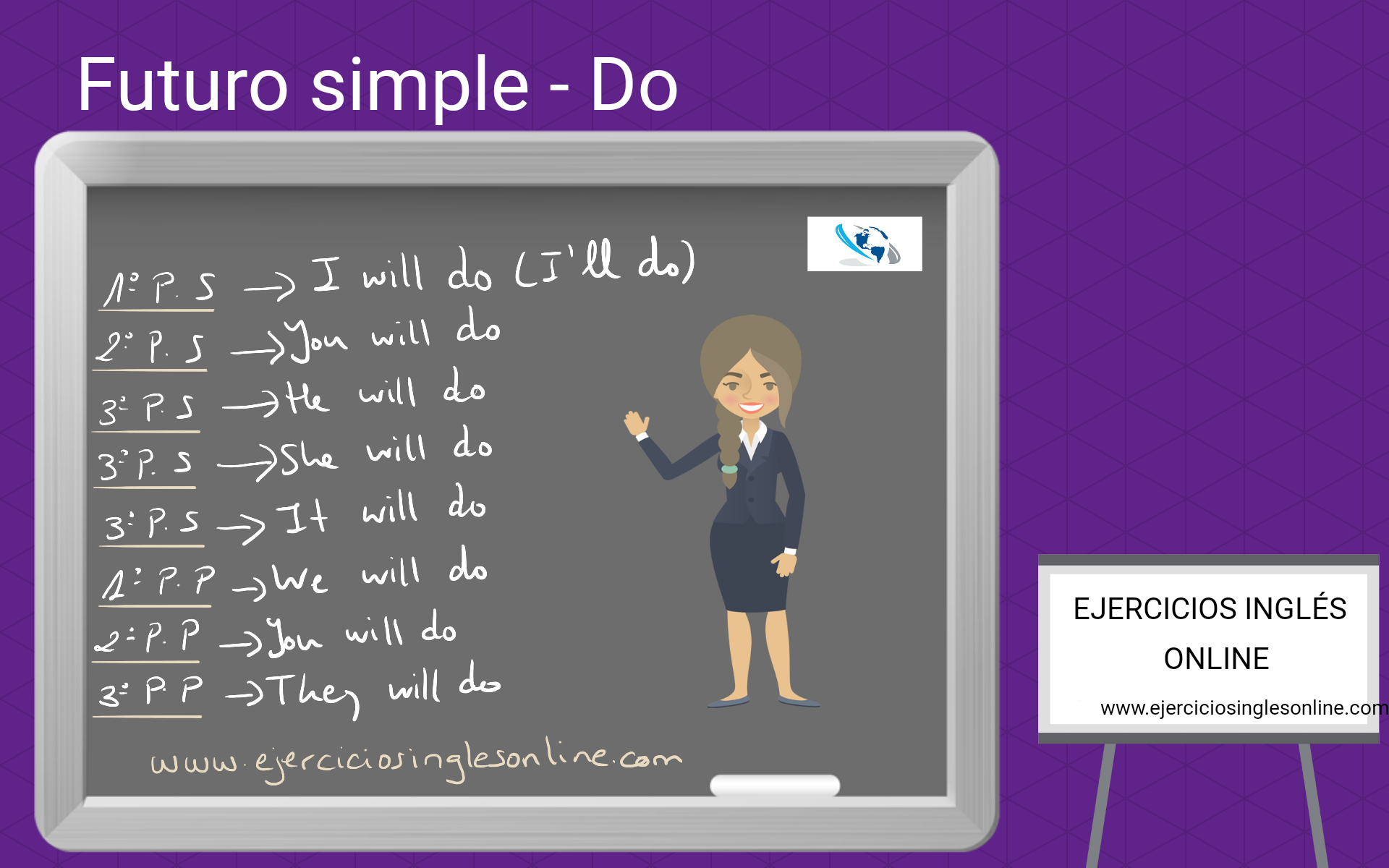 Descripción: Ejercicio de "will y going to" en inglés. Rellena los huecos utilizando will o going to de los verbos que hay entre paréntesis. Después, comprueba las respuestas. Desde este ejercicio, puedes acceder a la explicación del futuro simple (will) o el futuro planeado (going to) en español o en inglés.