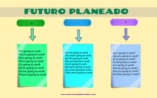 Ponemos a su disposición las principales infografías relacionadas con WILL Y GOING TO de nuestra web. Las infografías son una manera rápida de recordar y asimilar contenidos de una manera efectiva. Las infografías relacionadas con la diferencia entre will y going to en inglés tratan diferentes aspectos, como la formación, el uso y los adverbios relacionados con el fututo simple (will) y el futuro planeado (going to) en inglés. También analizamos la conjugación del fututo simple y el futuro planeado en inglés y la formación.