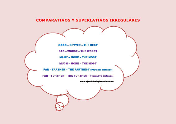 Ponemos a su disposición las principales infografías relacionadas con el comparativo y superlativo de los adjetivos en inglés de nuestra web. Las infografías son una manera rápida de recordar y asimilar contenidos de una manera efectiva. Las infografías relacionadas la formación del comparativo y el superlativo en inglés, con su formación regular e irregular.