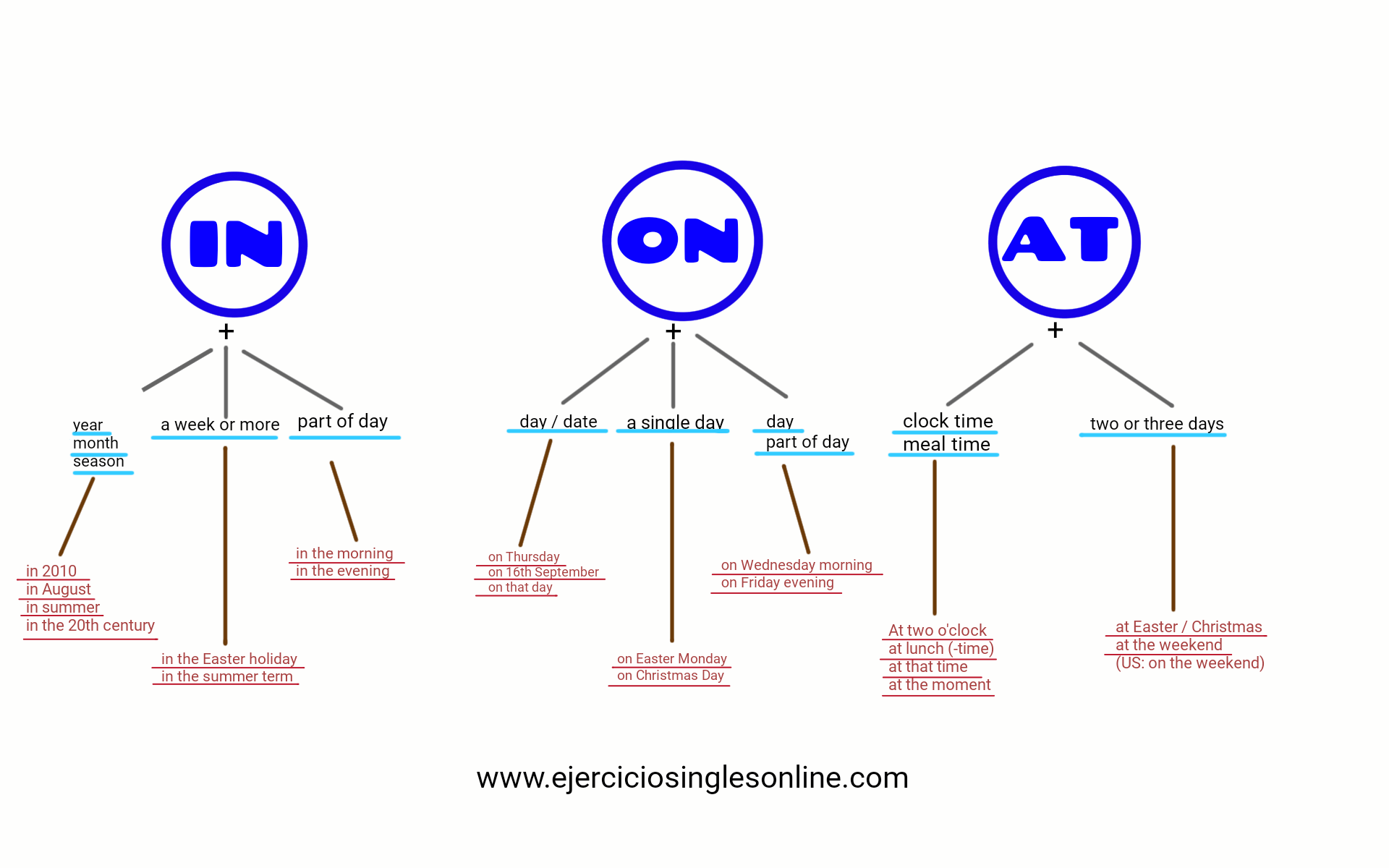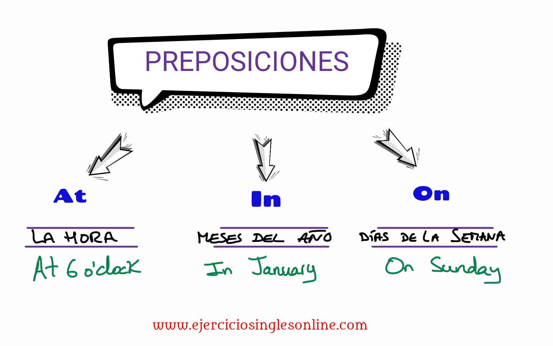 Descripción: preposiciones en inglés: uso de las preposiciones en inglés. Accede a los ejercicios de preposiciones en inglés online. Recuerda que todos los ejercicios de esta web contienen auto-corrección.